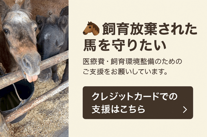 いたばし保護馬部のページを公開しました お知らせScreenshot 2025.07.102025.10.06 私たちの新しい取り組みである「いたばし保護馬部」の活動がスタートしました 詳細な活動についてはこちらのページをご覧ください。 ※CAT’S INN TOKYO(キャッツイン東京)の寄付ページに飛びます。