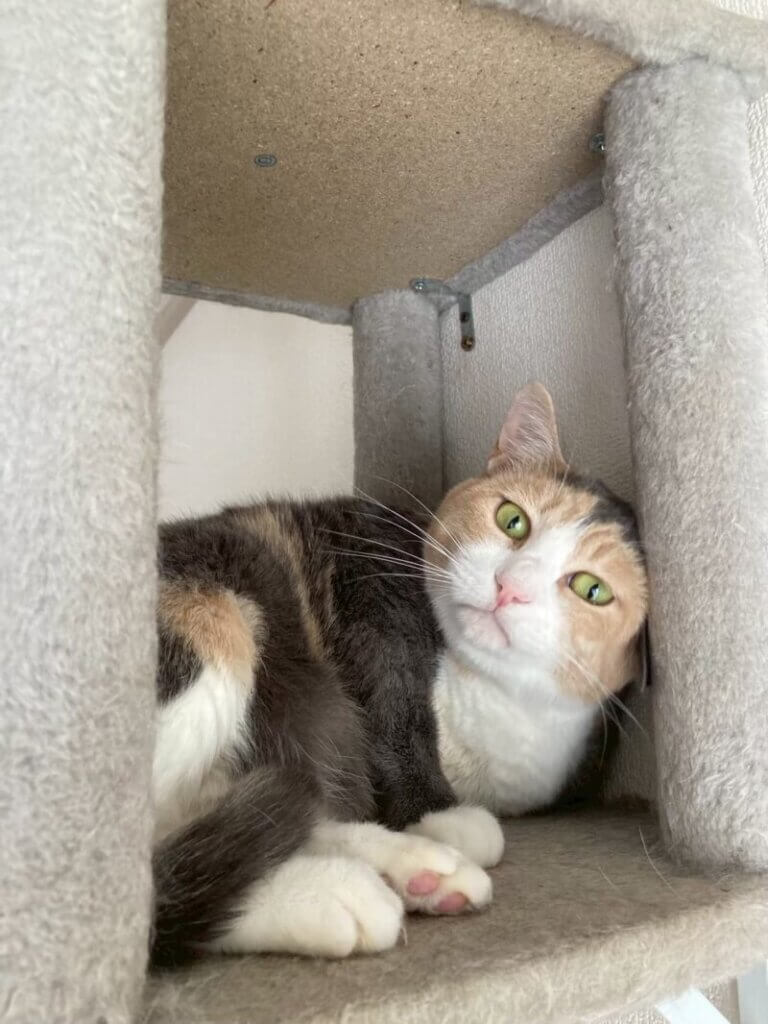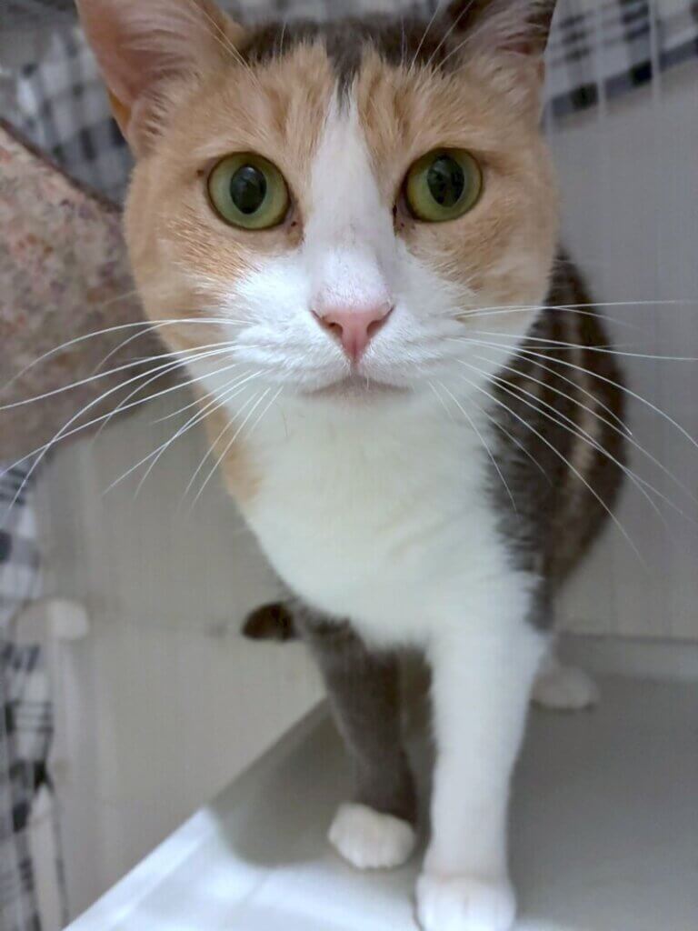 まだ心を開き切っていなく、どこか反抗期の10代少女のような眼差しが玄人好み。パステルの美しい色合いの三毛柄もおしゃれです。まん丸のお顔もキュート!先住猫さんのいる環境か、2匹で迎えてくださる方、お待ちしています。