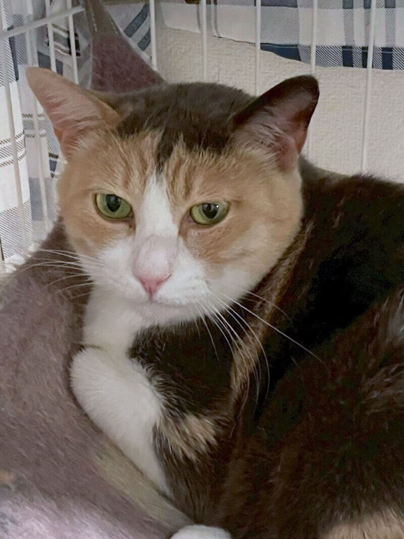 まだ心を開き切っていなく、どこか反抗期の10代少女のような眼差しが玄人好み。パステルの美しい色合いの三毛柄もおしゃれです。まん丸のお顔もキュート!先住猫さんのいる環境か、2匹で迎えてくださる方、お待ちしています。