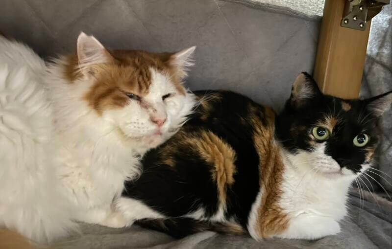 仲良しの美波とこたつでまったりしている様子。 ※1 右がソフラン ※2 美波も里親募集中です