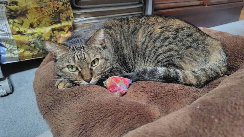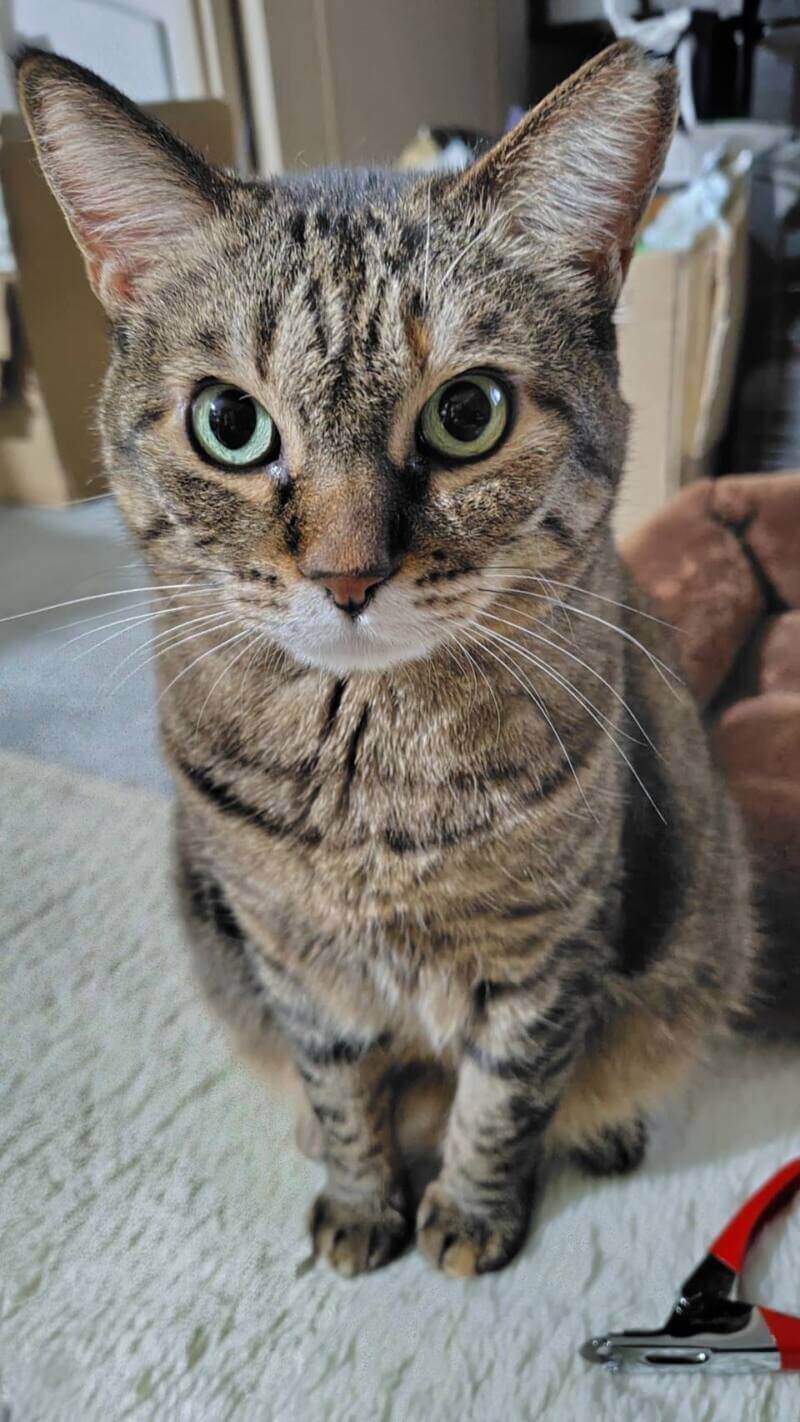 人間が大好きな猫さんで、人懐っこく、おしゃべりも得意♪ごはんもおやつも大好きで、時間になるとニャーニャーと圧強めに話しかけてくれます。性格はマイペースで、誰に対しても友好的。猫にもフレンドリーで、同じ保育園にいる光子に「遊ぼうよ~」と、よくちょっかいを出しています。一人っ子でも、先住猫さんがいるご家庭でも、上手くやっていける女の子だと思います。